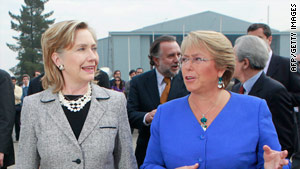 In addition to meeting with Bachelet at the airport in Santiago, Clinton also met with President-elect Sebastian Piñera, who will be sworn in next week.